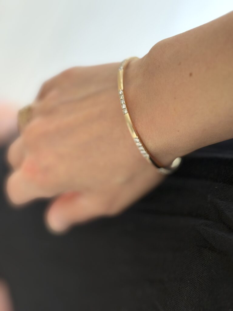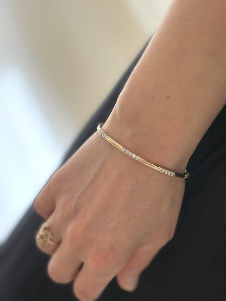 Introducing the Truegold Diamond Bangle. Margot’s signature piece and the subtle flex of 5 carats* of diamonds on your wrist. Crafted in solid gold and diamonds, the Truegold Bangle is your forever staple—elegant, enduring, and designed for the life you live. This is fine jewelry meant to be worn daily and loved for a lifetime.