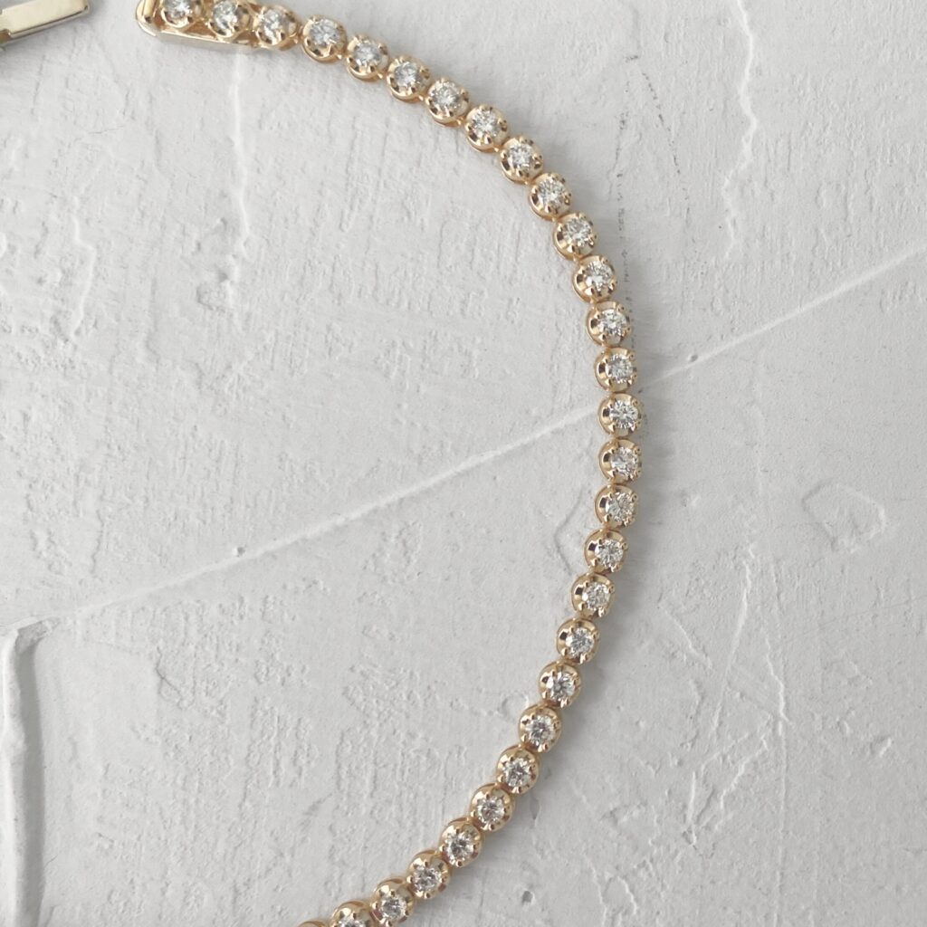 The Everyday Tennis offers a lighter take on our Classic Petit Tennis. With sparkling diamonds set in a lightweight gold mount, it comes at a more accessible price point. Ideal for daily wear and perfect for stacking with other bracelets.