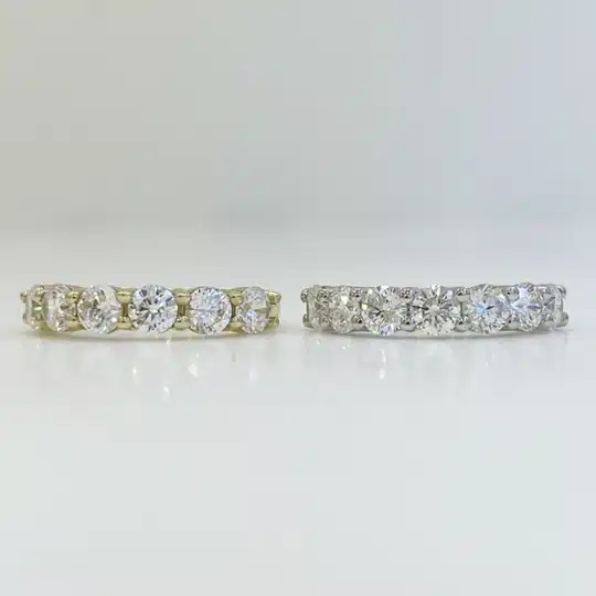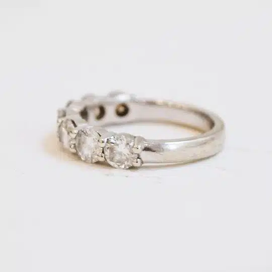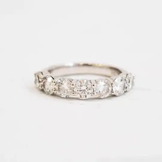 1.75cts of brilliant round diamonds are set with shared prongs to accentuate the shape of each stone.