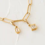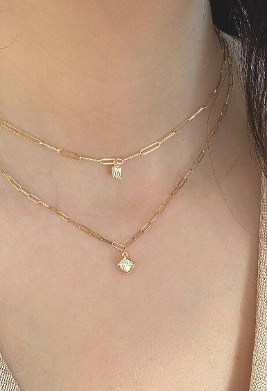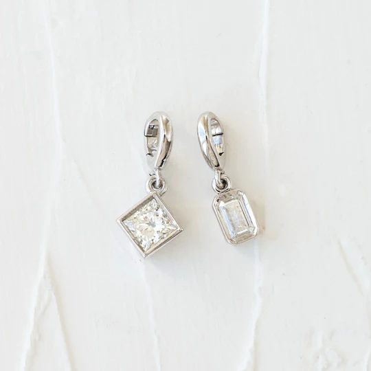 Indulge in a wave of nostalgia with these luxurious diamond charms that are sure to make a statement. Available in a baguette cut lab diamond set in 14k white gold. This piece is a true work of art. Share your story in style with this bold and timeless accessory.