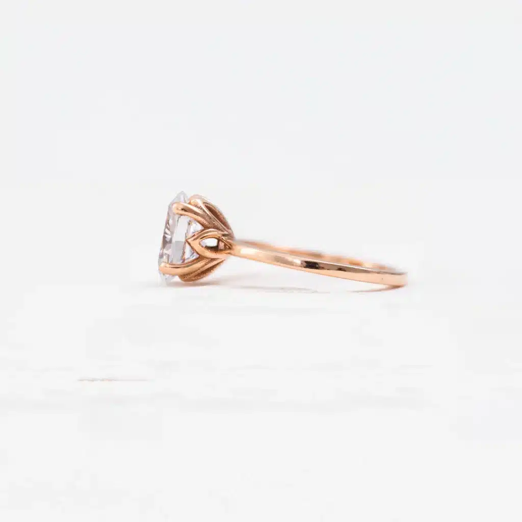 The Proposal Ring features a stunning sample white stone, elegantly set in your choice of 10k Gold. Although it may not possess the same finishes as our engagement rings, it radiates a captivating beauty that will leave your partner breathless.