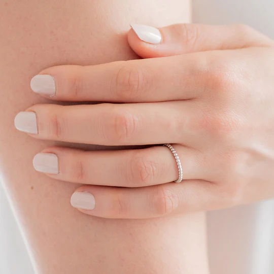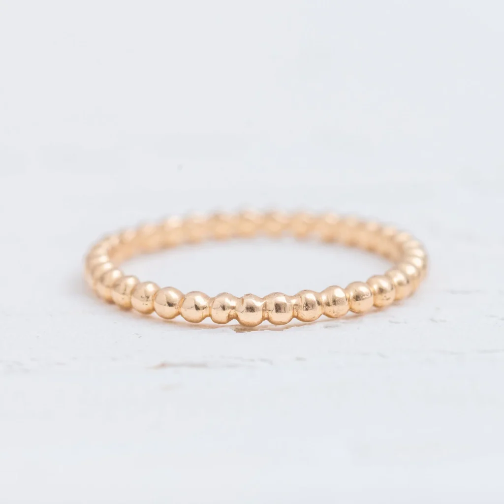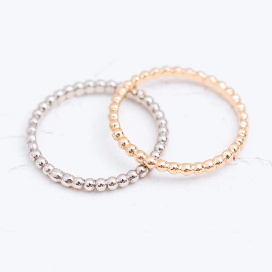 Classy and simple, this row of gold stones is a staple for your jewelry box. A beautiful accent to any ring set, or for casual everyday wear.