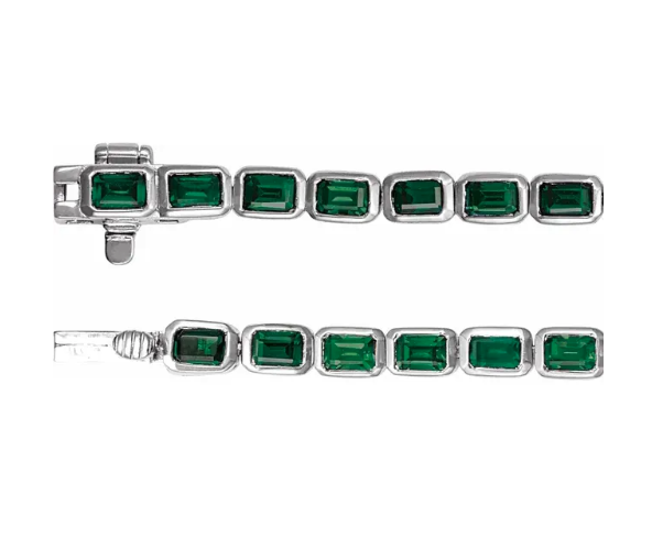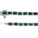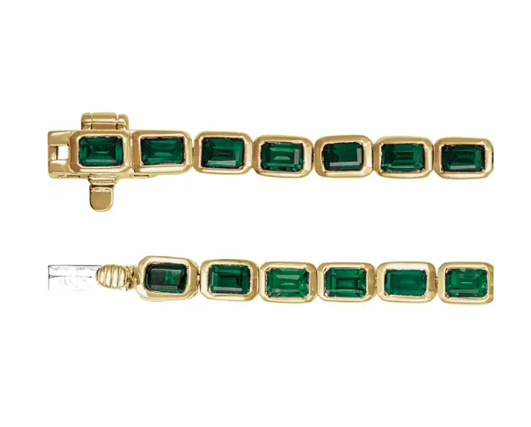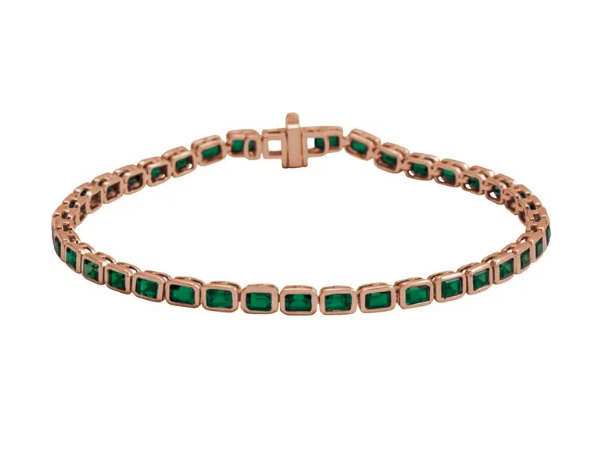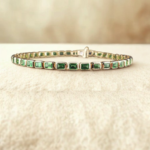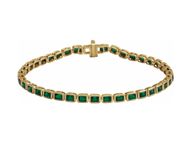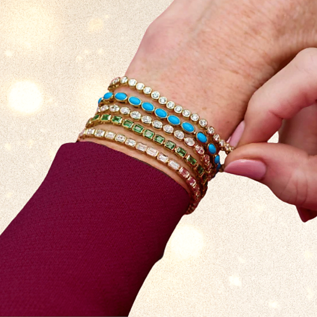 The smooth bezel frames keep the stones secure and low-profile, creating a sleek silhouette that’s comfortable for everyday wear while still feeling special. Worn alone it’s a striking wash of green; stacked, it adds a refined pop of color to your wrist story.